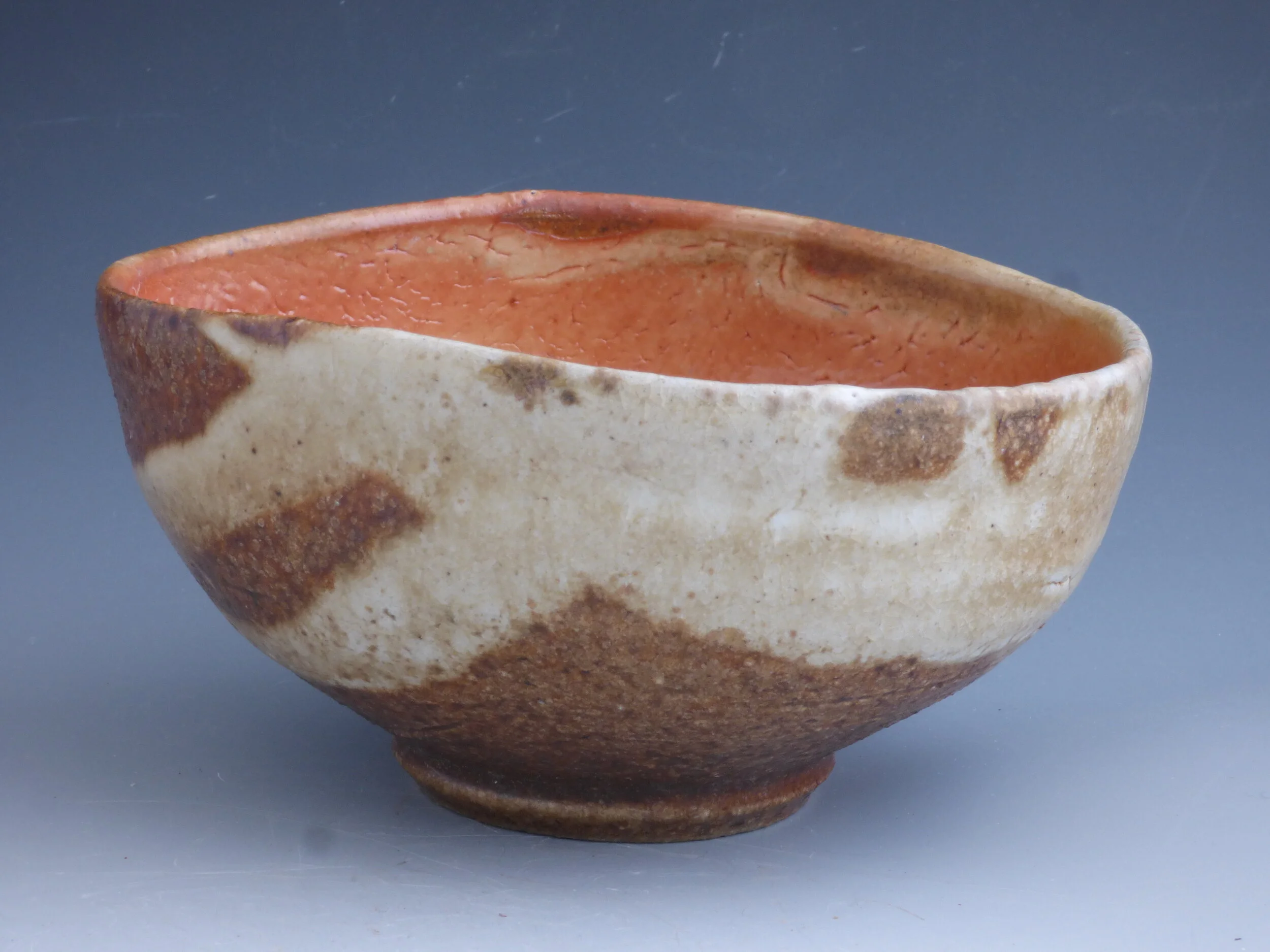 Flashing Shino Slip Wood-fired Tea Bowl (Chawan)